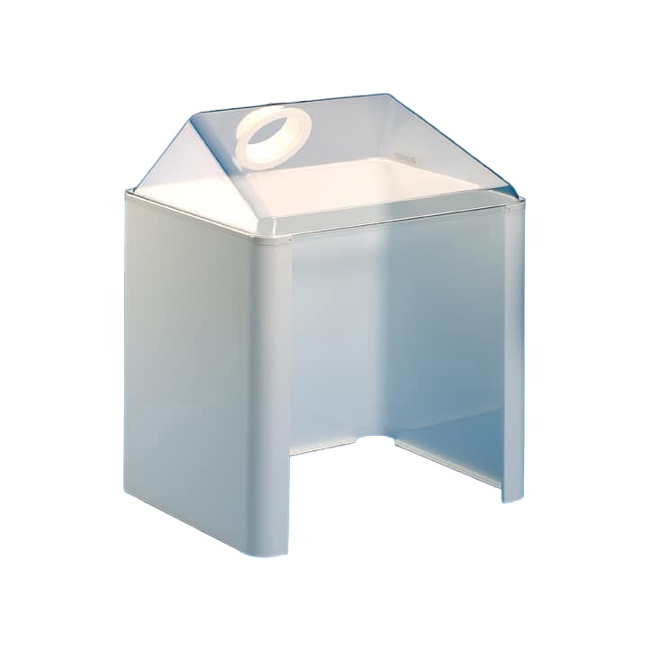 De Alsident afzuigkast bestaat uit witte gepoedercoate metalen wanden met antislip aan de onderzijde en een transparante top van PETG. Deze top is een scherm uit de serie van systeem 75. De afzuigkast wordt geleverd met een flens, een scharnier en twee aansluitpijpjes. Het scharnier in diameter 75 is voorzien van een afzuigklepje. Op deze manier is het mogelijk de luchtstroom in de afzuigkast aan en uit te zetten. De flens en het scharnier zijn in het geheel rood of geheel wit te bestellen.