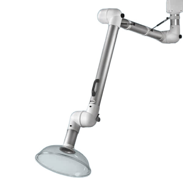 De systeem 100 AL serie van Alsident zijn aluminium afzuigarmen met een diameter van 100 mm en zijn geschikt voor plafond- of wandmontage.