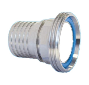 Zuivelkoppeling roestvaststaal 1.4404 ( AiISI 316L ), male versie met buitendraad volgens DIN 405-1 en combi tule net zaagvertanding en kraag waardoor hij gebruikt kan worden om op te persen maar ook voor montage met klemschalen. Inclusief ring.