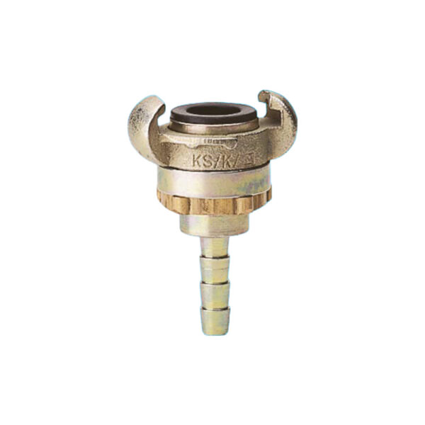 Nastelbare gietijzeren luchtkoppeling met slangpilaar. Met oliebestendige afdichtingsring. Met nastelbare schroefring voor beveiliging tegen ontkoppelen.