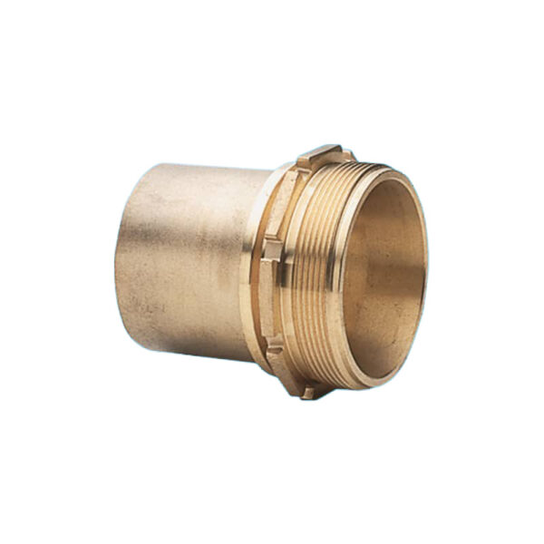 Messing tankwagenkoppeling met buitendraad. Gladde pilaar met borgrand voor klemschaalmontage.