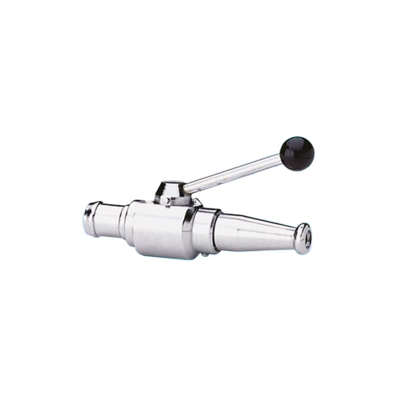 Messing verchroomde kogelstraalpijp met slangpilaar. In 3-standen uitvoering: dicht, sproeistraal en volle straal.