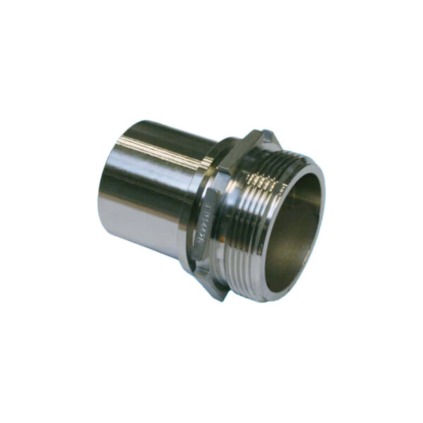 RVS tankwagenkoppeling met buitendraad. Gladde pilaar met borgrand voor klemschaalmontage.